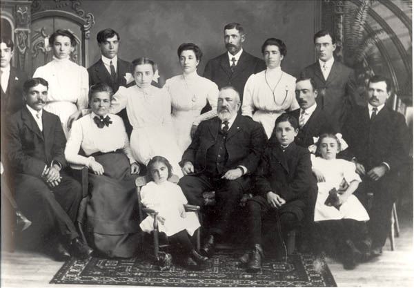 The Dobkin-Levine family, a farming family from Ellington, CT. Back row (left to right): David Levine, Fannie Dobkin Wall, Ben Levine, Toma Dobkin Birman, Rose Levine Halprin, Aaron Dobkin, Ida Levine Dobkin, Sam Levine, Isaac Levine.